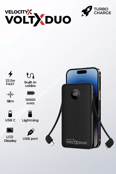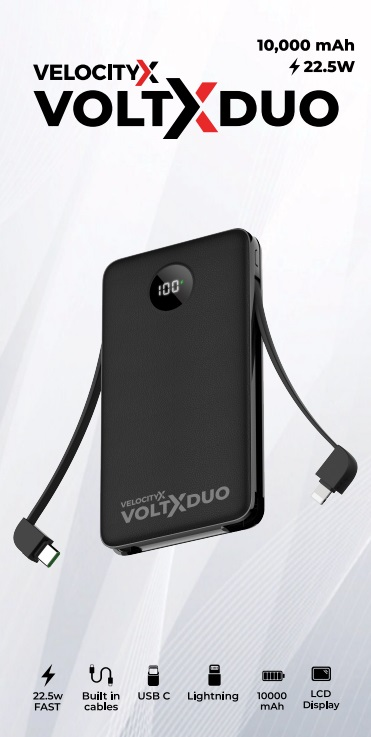 Meet the VelocityX VoltX Duo, the next generation of smart, ultra-fast charging on the go. Designed for those who demand performance, style, and reliability in one sleek device, the VoltX Duo delivers 22.5W Turbo Charge power in a compact, durable body built for everyday life.
